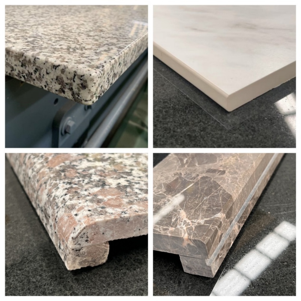 A máquina de perfilamento de bordas de pedra foi projetada para processar diversos tipos de pedra, incluindo mármore, granito, quartzo e pedra sinterizada. Ela pode realizar a produção contínua de múltiplos perfis de bordas, como meia ponta arredondada, ponta arredondada completa, bordas radiais e chanfros, com alto brilho e alta eficiência.